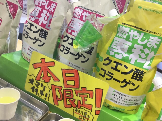 買い物がてら通えるスポーツクラブ 本日は、愛知県にあるスポーツクラブにて、クエン酸コラーゲン粉末スポーツ飲料の「燃やしま専科」と、クエン酸アミノ酸粉末スポーツドリンクの「アップイー」、「ダウンエフ」の試飲会を開催しており…