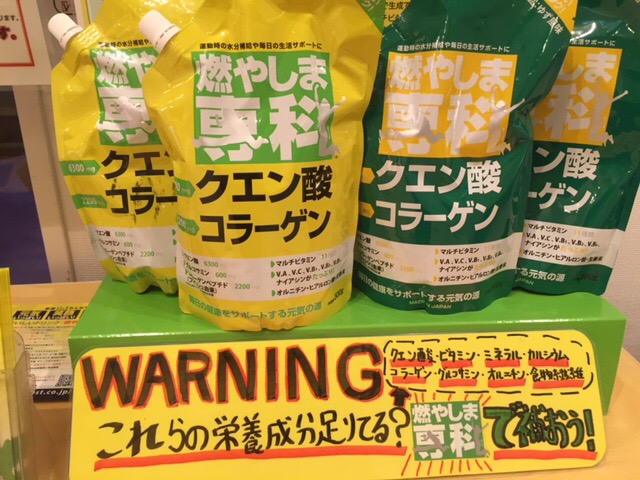 新しい店舗でとてもキレイ 今日は広島県にあるスポーツクラブで、クエン酸コラーゲン粉末スポーツドリンクの燃やしま専科、試飲販売会です。 燃やしま専科とは、クエン酸とコラーゲンが主な成分の粉末スポーツドリンクです。 こちらで…