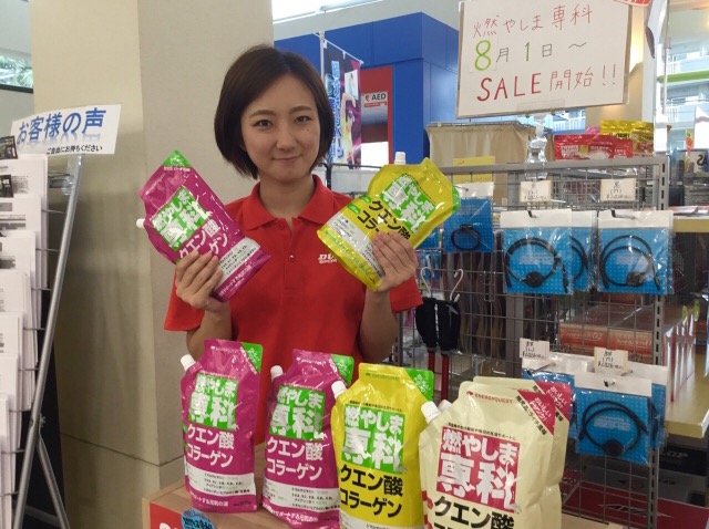生活の一部にクエン酸ドリンク 本日はスポーツクラブルネサンスにてクエン酸コラーゲン粉末ドリンク「燃やしま専科」の試飲会を開催しました。本日は最終日でした。お盆あけで主婦の皆さんも通常生活に戻り、動きたくてウズウズしていた…