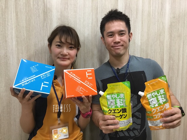 新百合ヶ丘で試飲会中 本日は神奈川県にあるスポーツクラブティップネス新百合ヶ丘店にて、クエン酸コラーゲン粉末スポーツドリンクの「燃やしま専科」と、クエン酸アミノ酸粉末スポーツドリンクの「アップイー」、「ダウンエフ」の試飲…