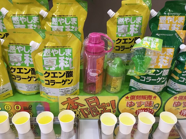 運動中の水分補給に 本日は関東地方のスポーツクラブさんで クエン酸粉末タイプのスポーツドリンクの試飲会を開催しています。 燃やしま専科 アップイー ダウンエフ どの商品も運動中の水分補給に 最適です。 『アップイー』は …