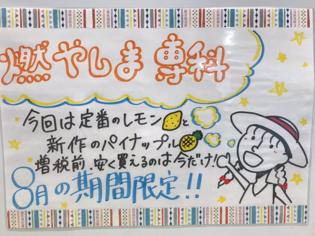 関西でもパイナップル風味が登場! 今週は関西地方にあるスポーツクラブを回って、「燃やしま専科」の試飲会を行いました。とんでもない暑さで外にいるだけでも汗だくになります。運動するときはもちろん日常の水分補給でクエン酸もしっ…