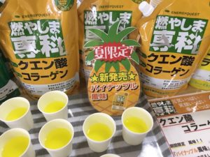 特に汗をかく夏場には『燃やしま専科』が必需品になっています。ビタミンミネラルの補給にもなりますし、コラーゲン、ヒアルロン酸なども入っているのでお肌も調子が良いです。
