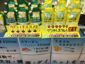 緑の袋がゆず味、黄色い袋がレモン味 本日は千葉県にあります、オークス上志津店に伺いました。こちらではクエン酸コラーゲン粉末飲料【燃やしま専科】試飲販売会を開催しました。 定番のレモン味と限定のゆず味。2種類の燃やしま専科…