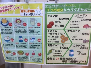 特に汗をかく夏場には『燃やしま専科』が必需品になっています。ビタミンミネラルの補給にもなりますし、コラーゲン、ヒアルロン酸なども入っているのでお肌も調子が良いです。