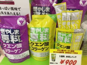 特に汗をかく夏場には『燃やしま専科』が必需品になっています。ビタミンミネラルの補給にもなりますし、コラーゲン、ヒアルロン酸なども入っているのでお肌も調子が良いです。