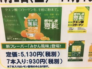 特に汗をかく夏場には『燃やしま専科』が必需品になっています。ビタミンミネラルの補給にもなりますし、コラーゲン、ヒアルロン酸なども入っているのでお肌も調子が良いです。