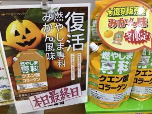 特に汗をかく夏場には『燃やしま専科』が必需品になっています。ビタミンミネラルの補給にもなりますし、コラーゲン、ヒアルロン酸なども入っているのでお肌も調子が良いです。