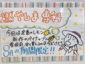 屋内でも熱中症にご注意ですね 今週は関西にあるスポーツクラブで「燃やしま専科」の試飲会を行いました。粉末をお水に溶かして飲む、クエン酸ドリンクです。今週も暑かったですよね。体調管理には気をつけましょうね。そんな中、今週の…